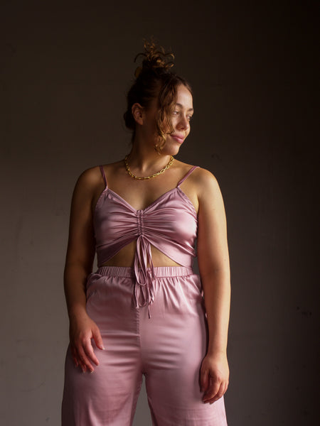 Drawstring through the centre of the crop.